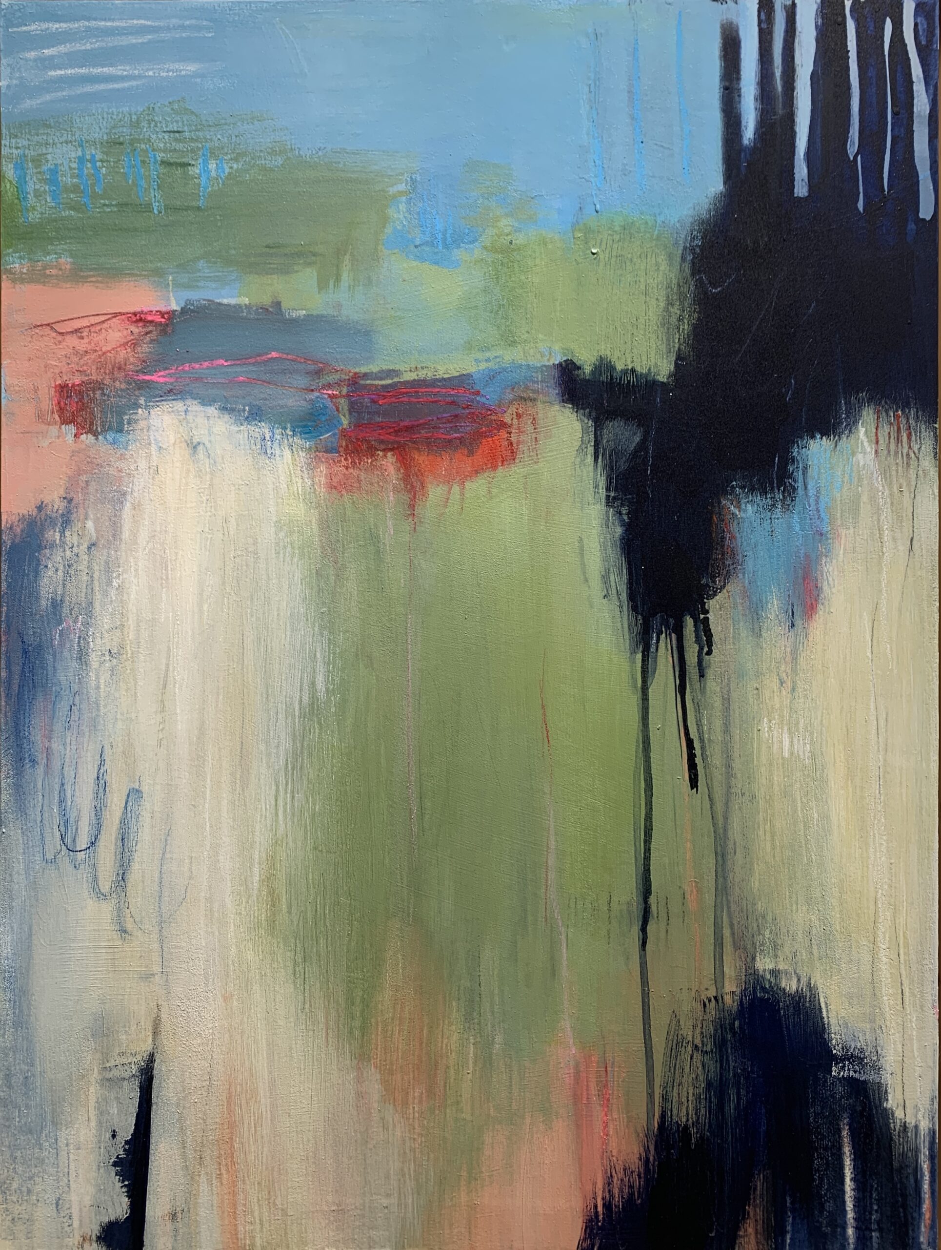 The color spilling from every shop in the Medina, the walled city of Fez in Morocco, inspired this mixed media painting. It is on a cradled panel, in a simple wooden floater frame